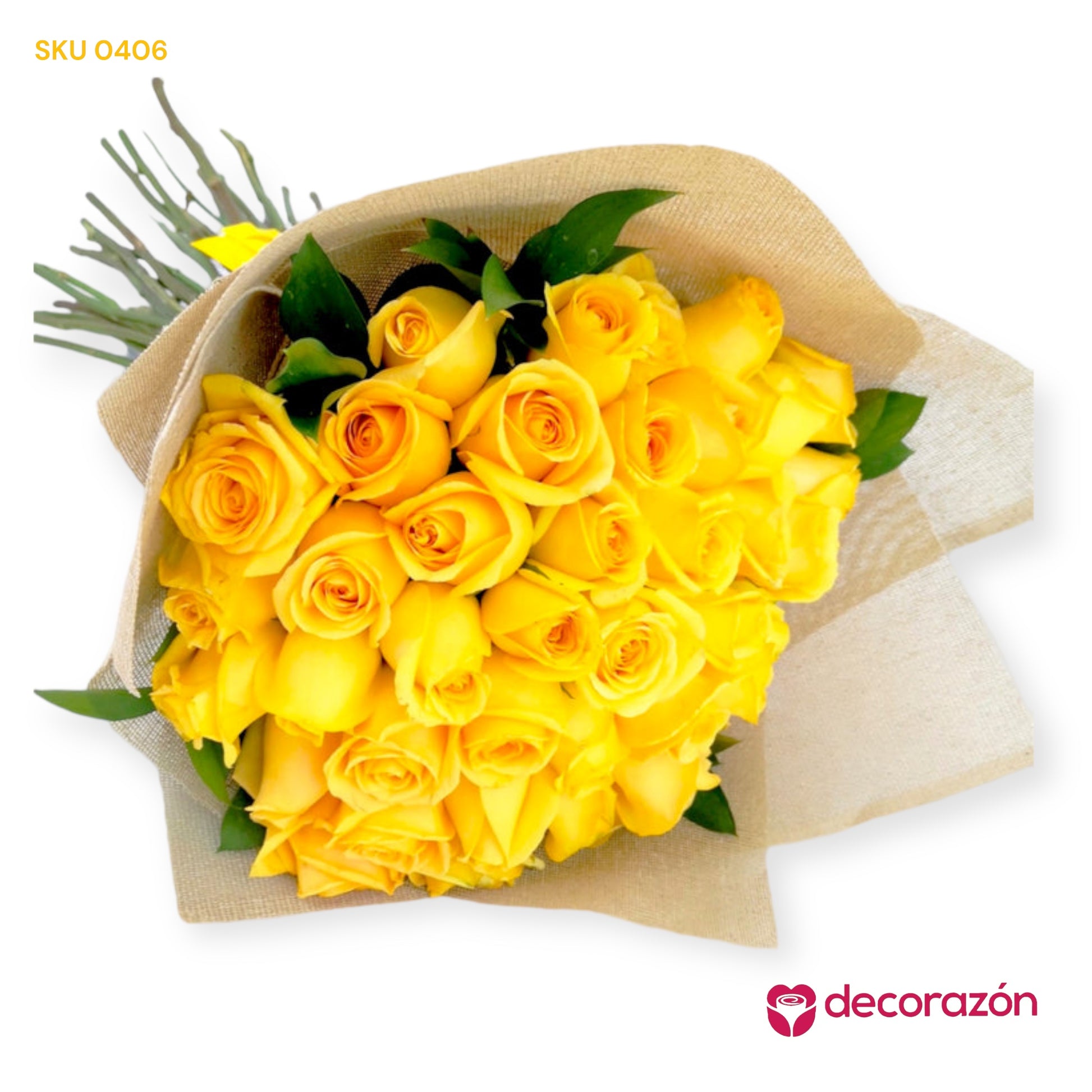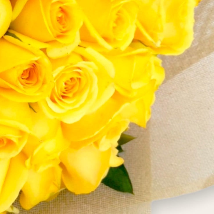 Imponente ramo en Rosas Amarillas que no pasará desapercibido, el color de las rosas es ideal para expresar total admiración, también el color amarillo es ideal para dar animo y desear un "Mejórate pronto".