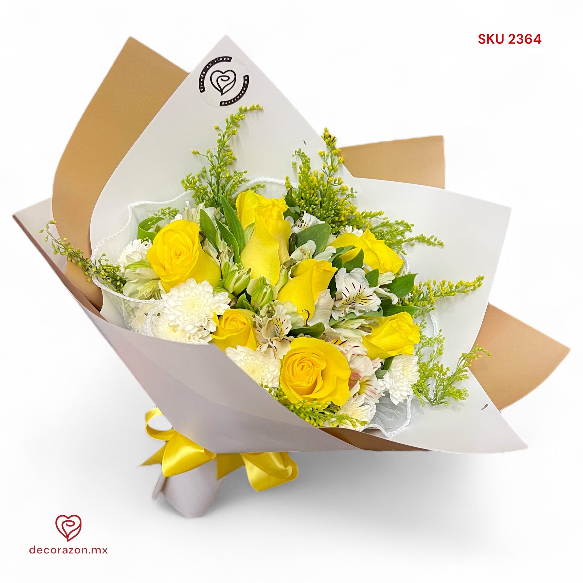 Nuestro ramo de rosas amarillas, con su color brillante y hermoso aroma, es el regalo perfecto para alegrar el día a cualquier ser querido.Este ramo es una forma de expresar amor y amistad.