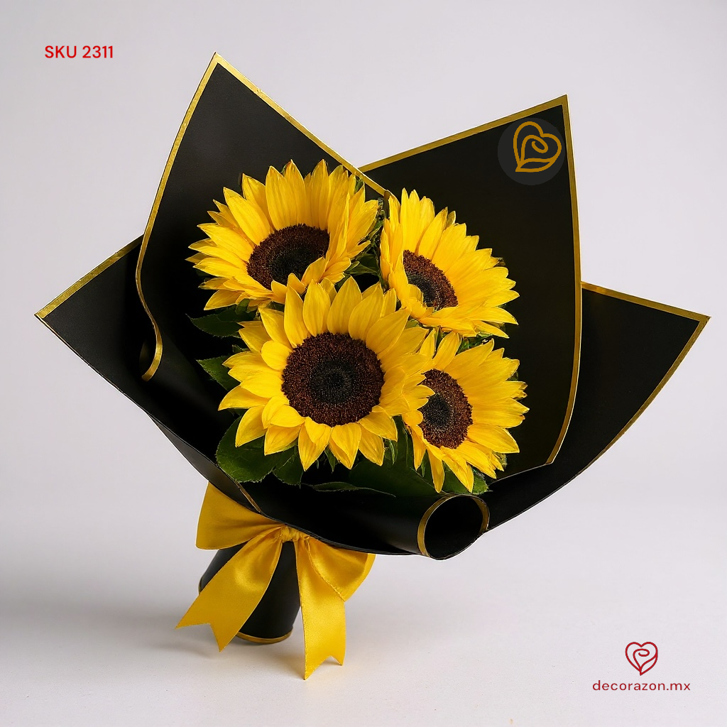 Bella es un ramo de girasoles, una flor que simboliza la felicidad y la energía positiva. Este ramo es perfecto para alegrar cualquier espacio y levantar el ánimo de quien lo recibe. ¡Haz que alguien se sienta especial con Bella!