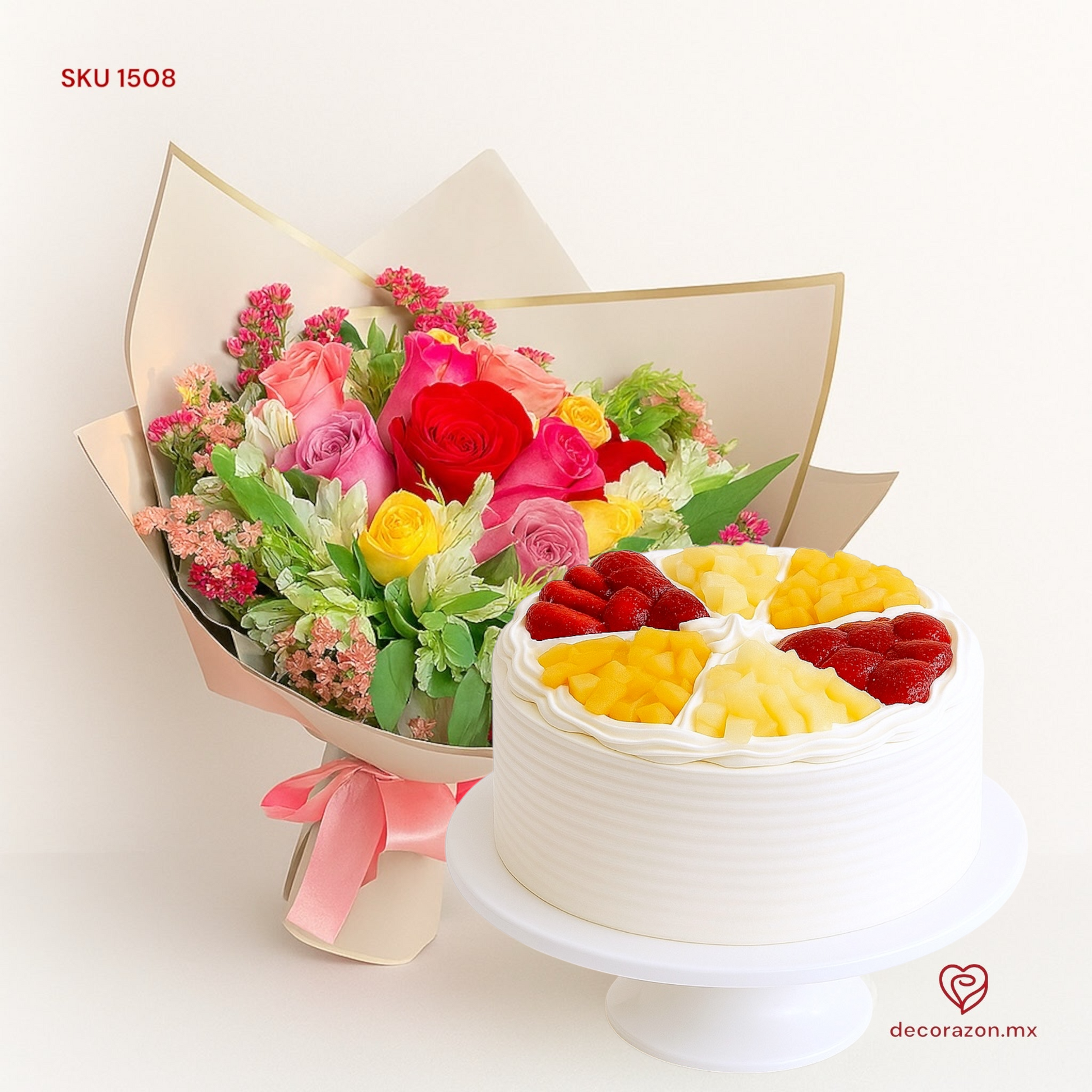 Este hermoso ramo de rosas y pastel de cumpleaños es el regalo perfecto para celebrar a esa persona especial. Con un toque dulce y delicado, este combo traerá alegría y felicidad en su día. Flores frescas y un delicioso pastel harán de este cumpleaños uno inolvidable. ¡Sorpréndelos con este detalle único!