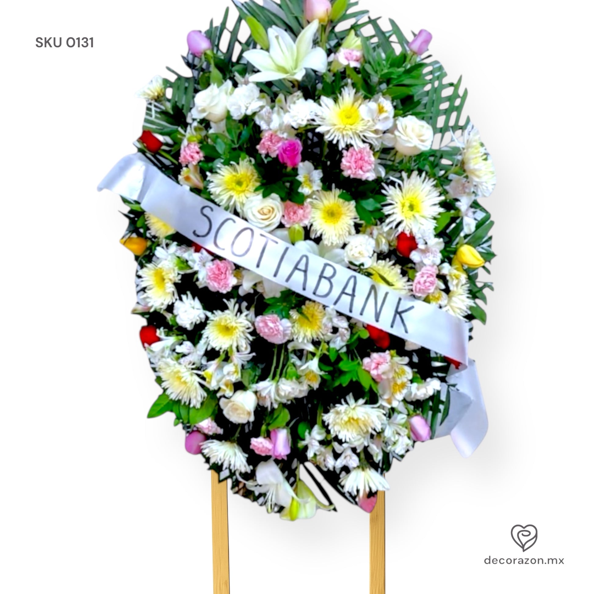 Corona Mediana de condolencia en tono blanco,rosa y rojo que enviará tu cariño y respeto a esa persona especial.
