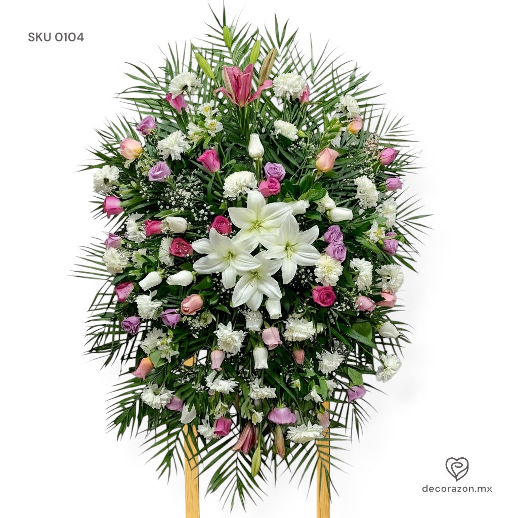 Corona Mediana de condolencia en tono rosa con blanco que demostrará tu afecto y apoyo a esa persona especial.