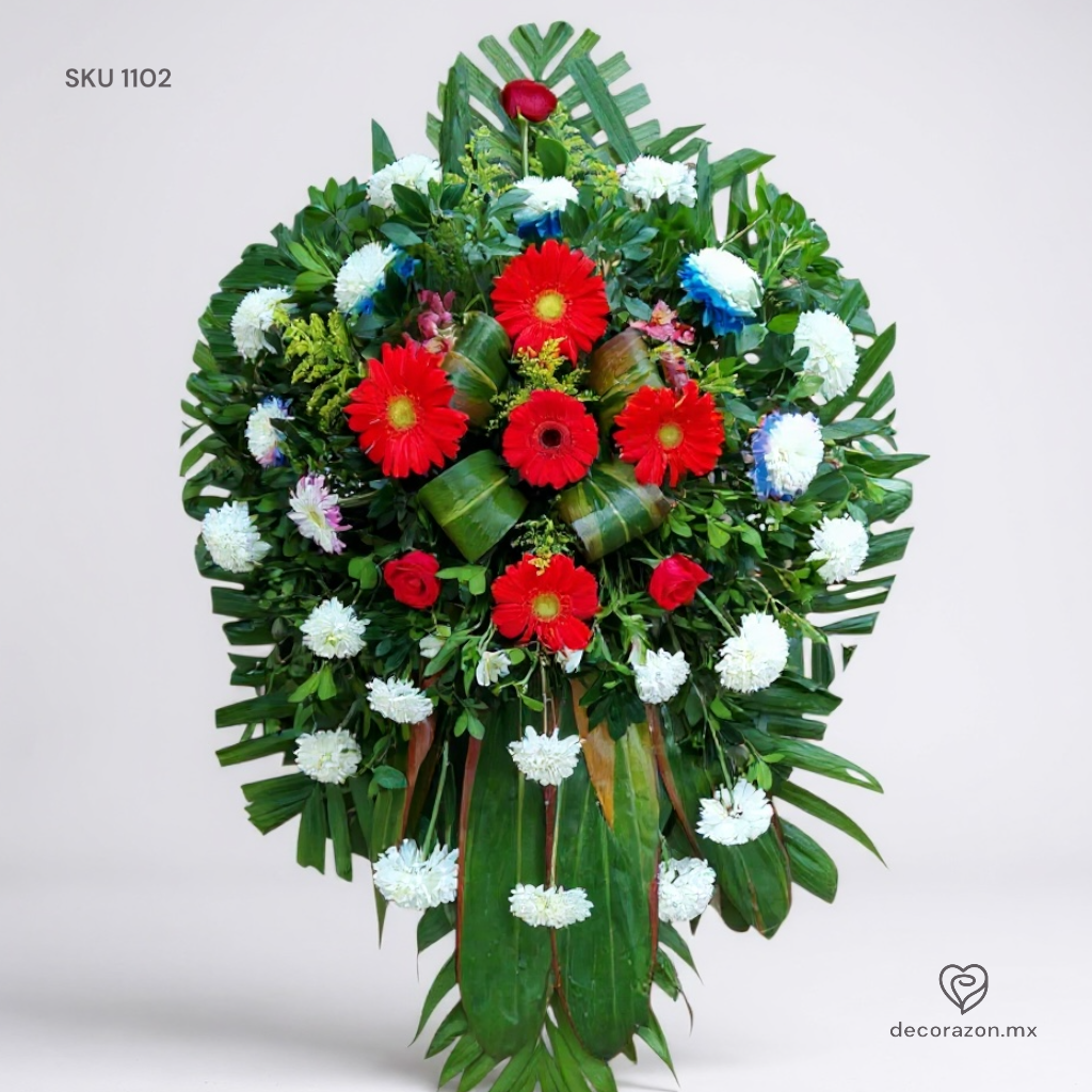 Siempre serás nuestro refugio, y tu memoria vivirá en nuestros corazones. Corona funeral con colores Rojo y blanco.