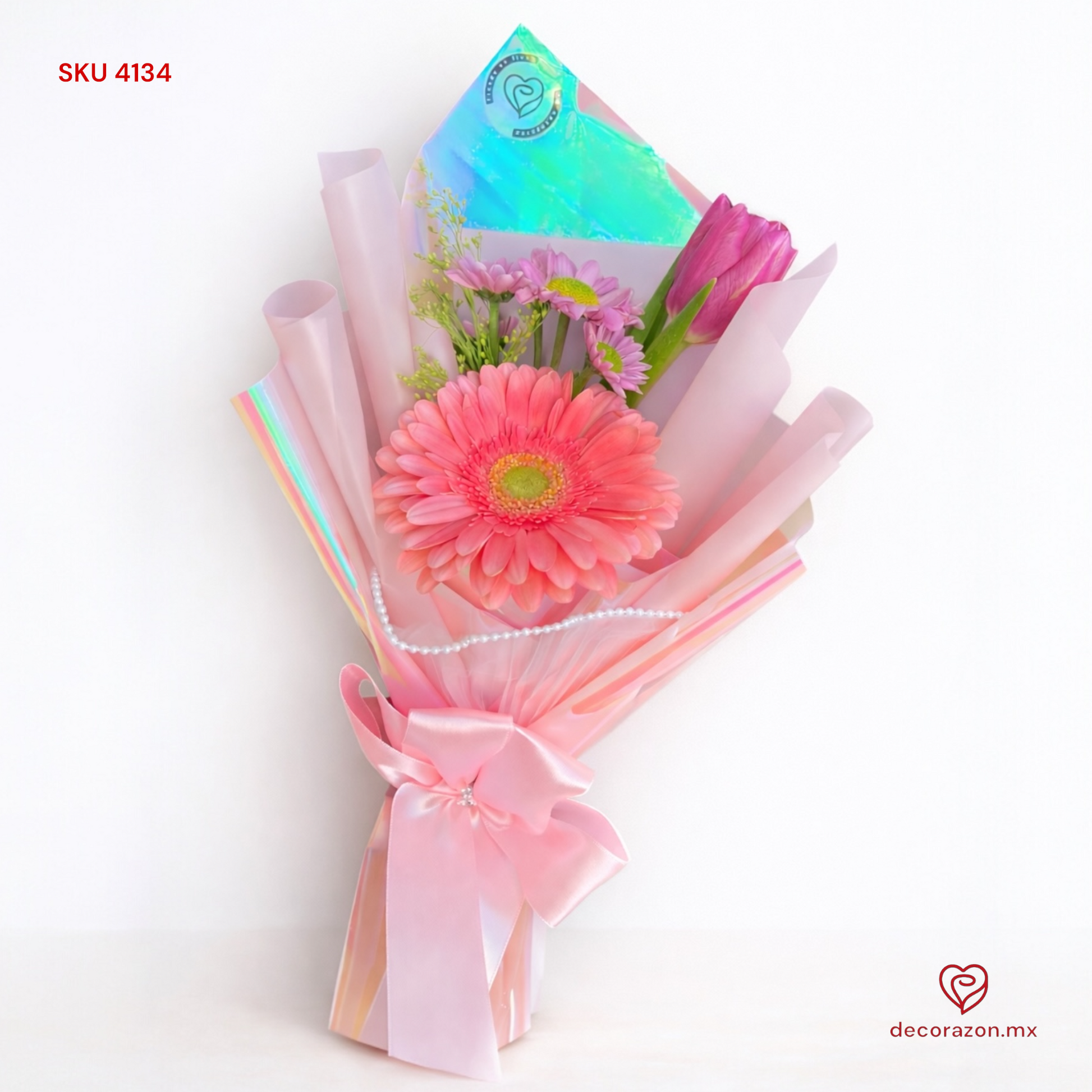 Sorprende a tus seres queridos con este hermoso detalle de Gerbera y Tulipán. Perfecto para expresar tus sentimientos en ocasiones especiales. Este regalo transmite calidez y afecto, haciendo de cada momento algo memorable.