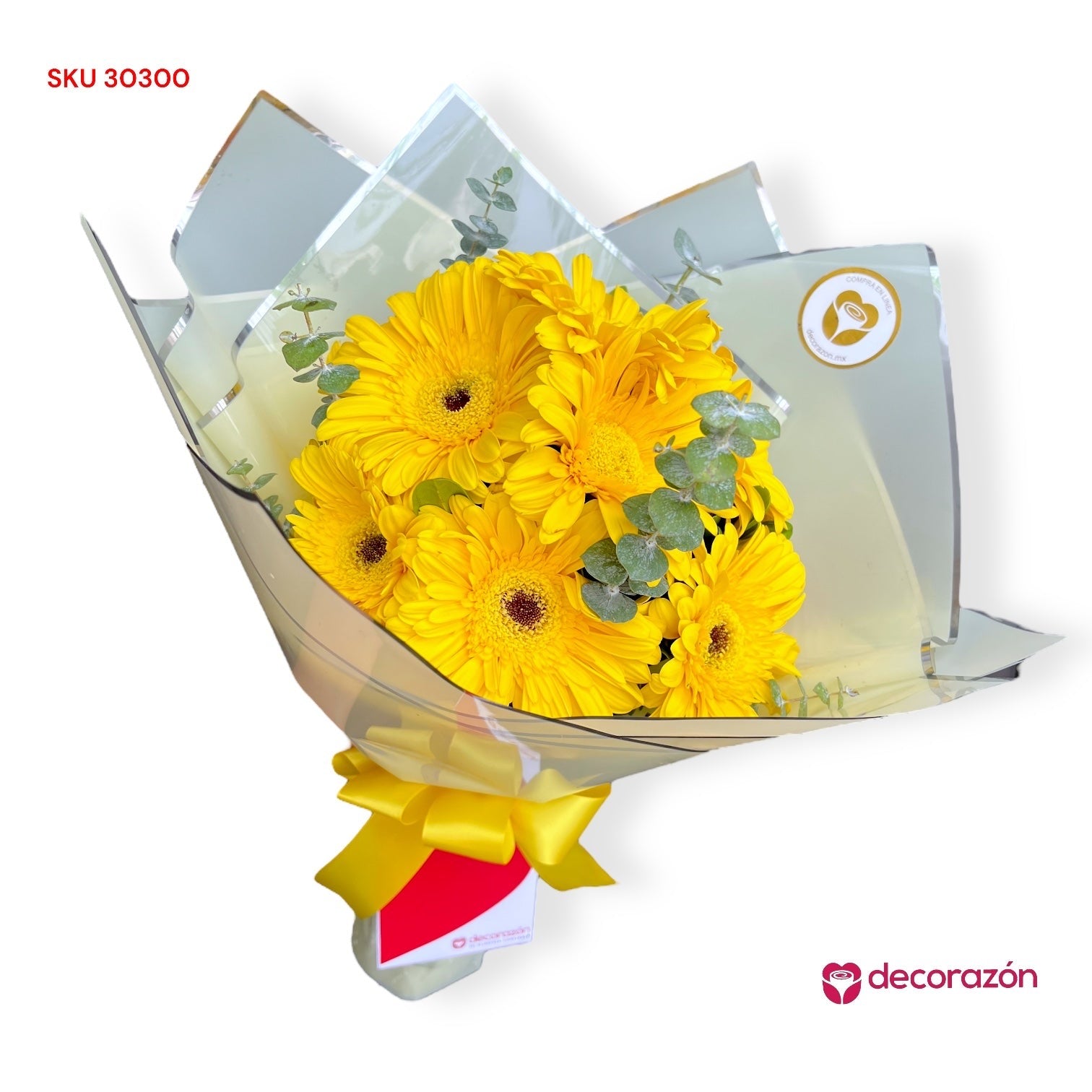 Llena de energía con este ramo de Gerberas amarillas.Estas hermosas flores simbolizan felicidad, optimismo y amistad, convirtiéndolas en el detalle perfecto para alegrar el día de alguien especial.