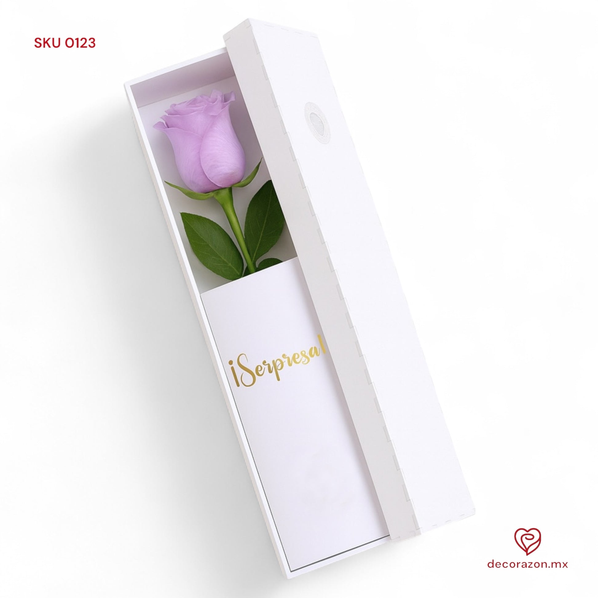 Esta hermosa caja de Gala contiene una delicada rosa lila, perfecta para expresar amor y admiración. Con un diseño elegante y exclusivo, esta rosa será el regalo ideal para sorprender a esa persona especial. Un regalo que perdurará en el corazón y recordará su belleza eternamente.