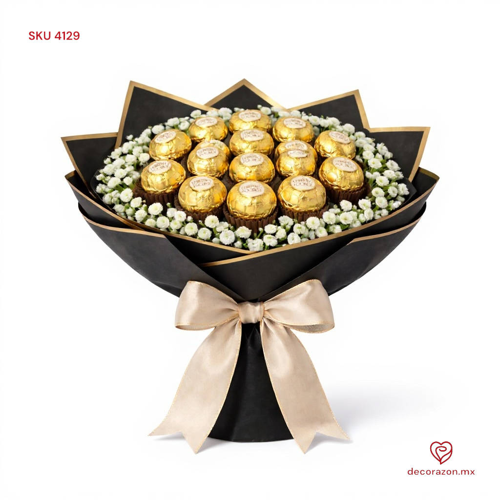 Sorprende a esa persona especial con un hermoso ramo de chocolates Ferrero. Este regalo no solo es delicioso, sino que también es una forma encantadora de expresar tus sentimientos. Ideal para cumpleaños, aniversarios o simplemente para alegrar el día de alguien. ¡Haz que cada bocado cuente!