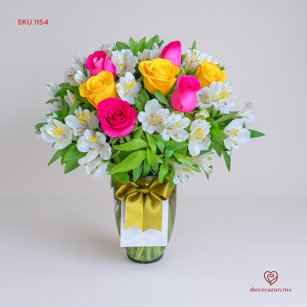 Festeja a esa persona especial con este hermoso florero de rosas combinadas, ideal para celebrar cualquier ocasión.