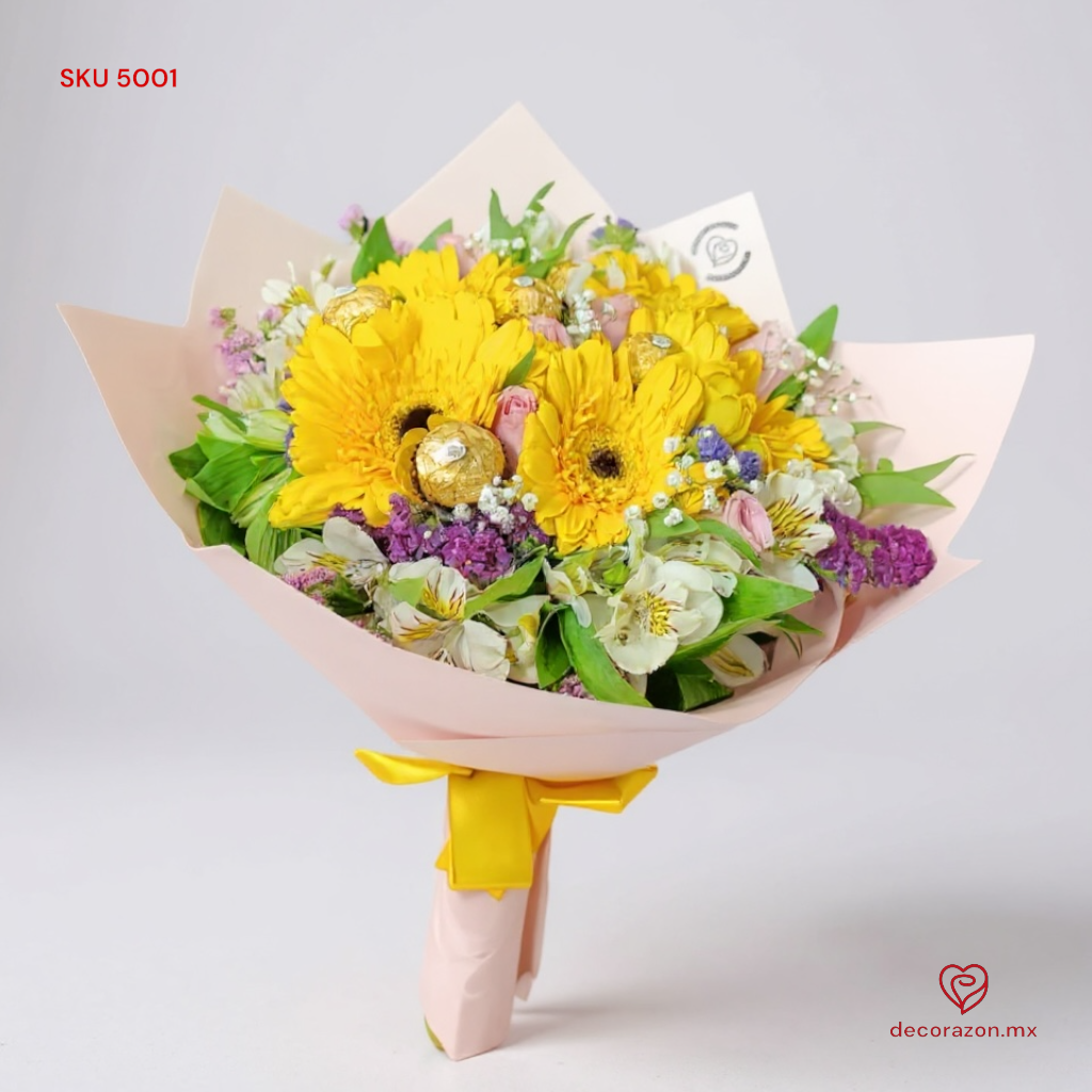 El ramo Guapa está compuesto de hermosas gerberas y rosas junto con chocolates deliciosos, creando la combinación ideal para expresar tu amor y cariño.Sorprende a tu ser querido con este encantador ramo y demuéstrale cuánto te importa.