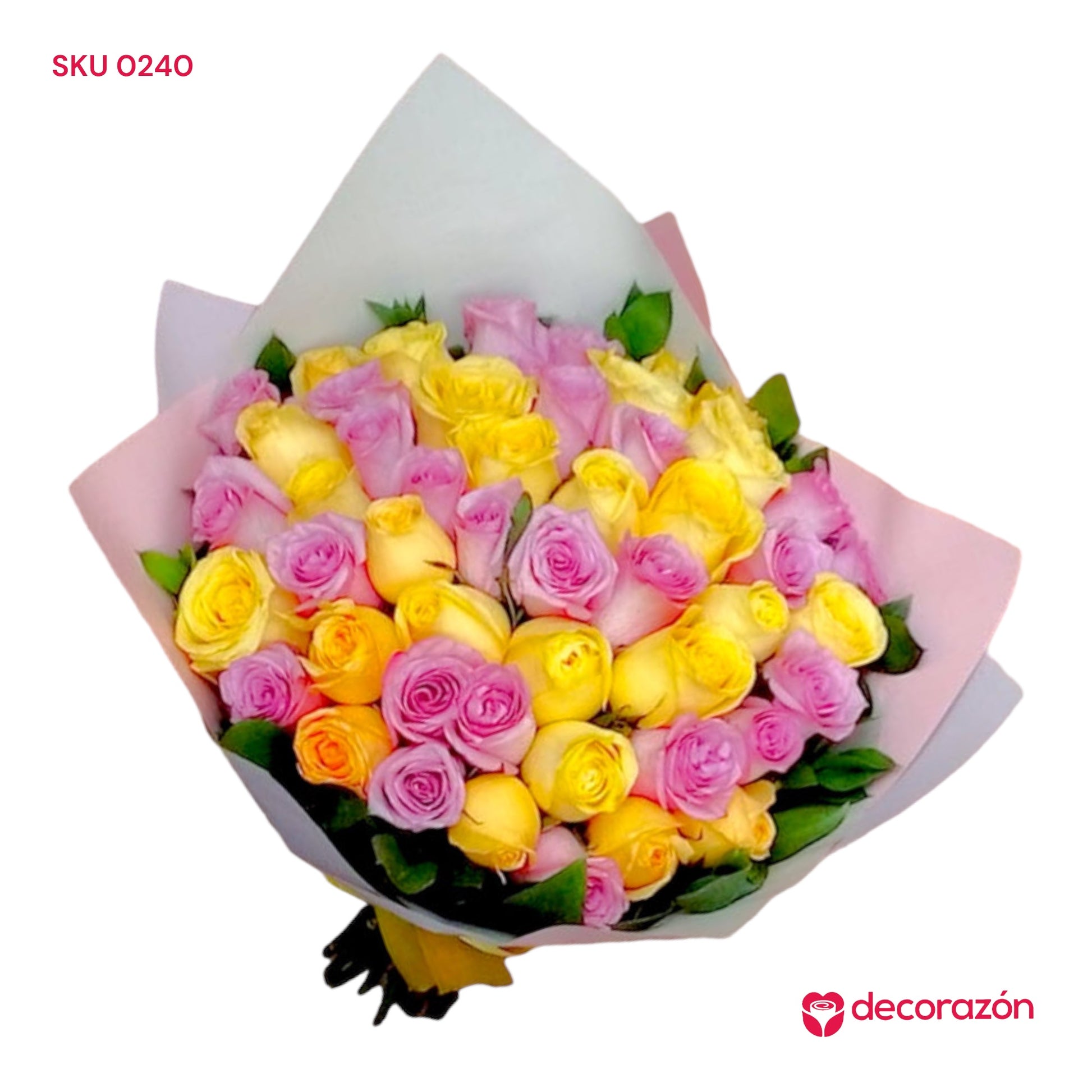 Impresiona con este bonito ramo de rosas en tonos amarillo y rosa, perfecto para alegrar su día. ☺️