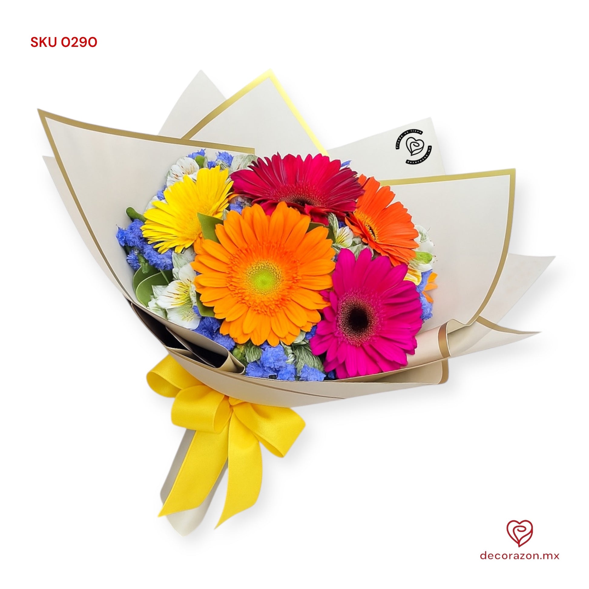 Sorprende con un ramo de gerberas de colores. Estas flores brillantes y alegres iluminarán cualquier espacio y traerán alegría a quien las reciba. ¡Agregue un toque de color y felicidad hoy mismo!
