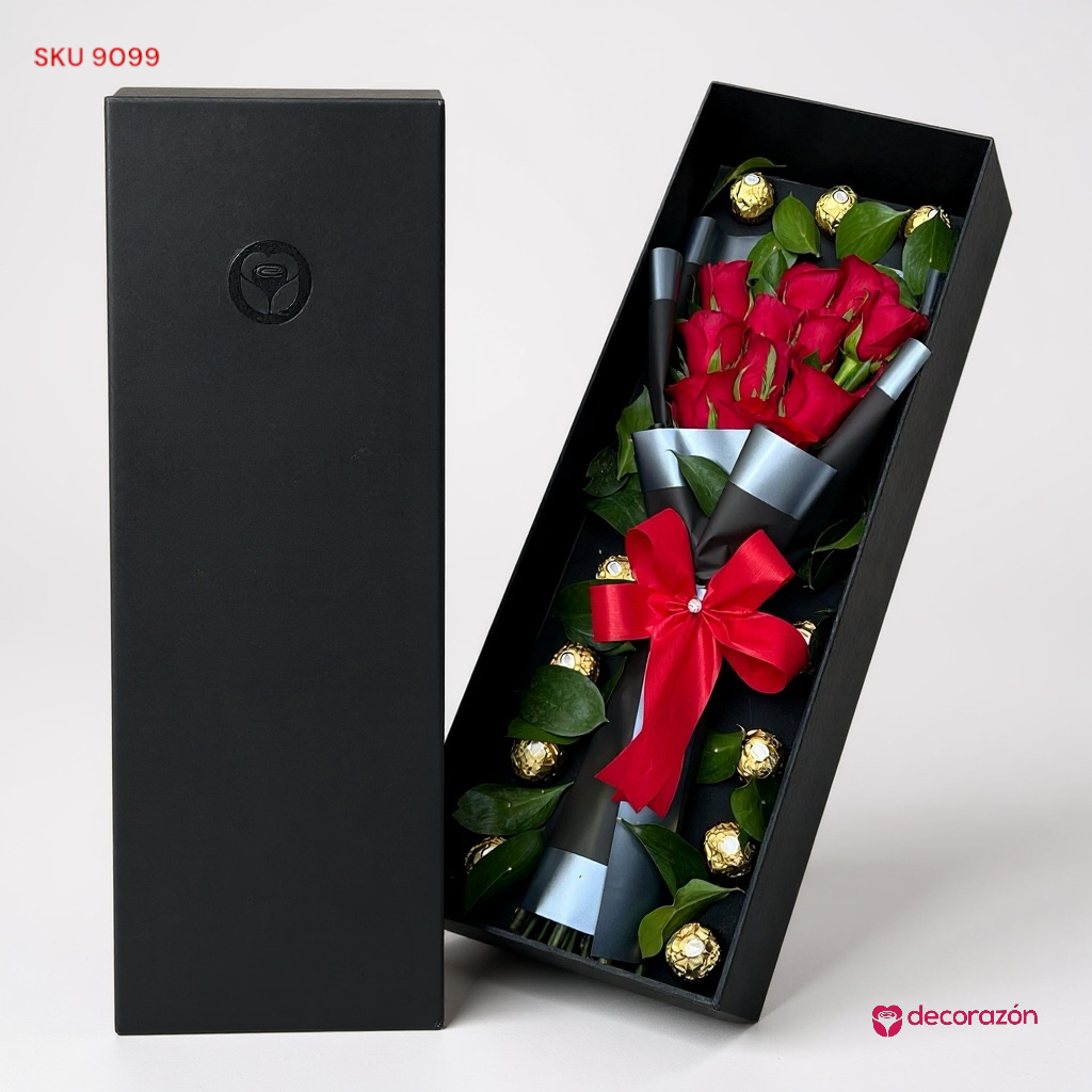 • 1 ramo de 12 rosas rojas con envoltura y moño