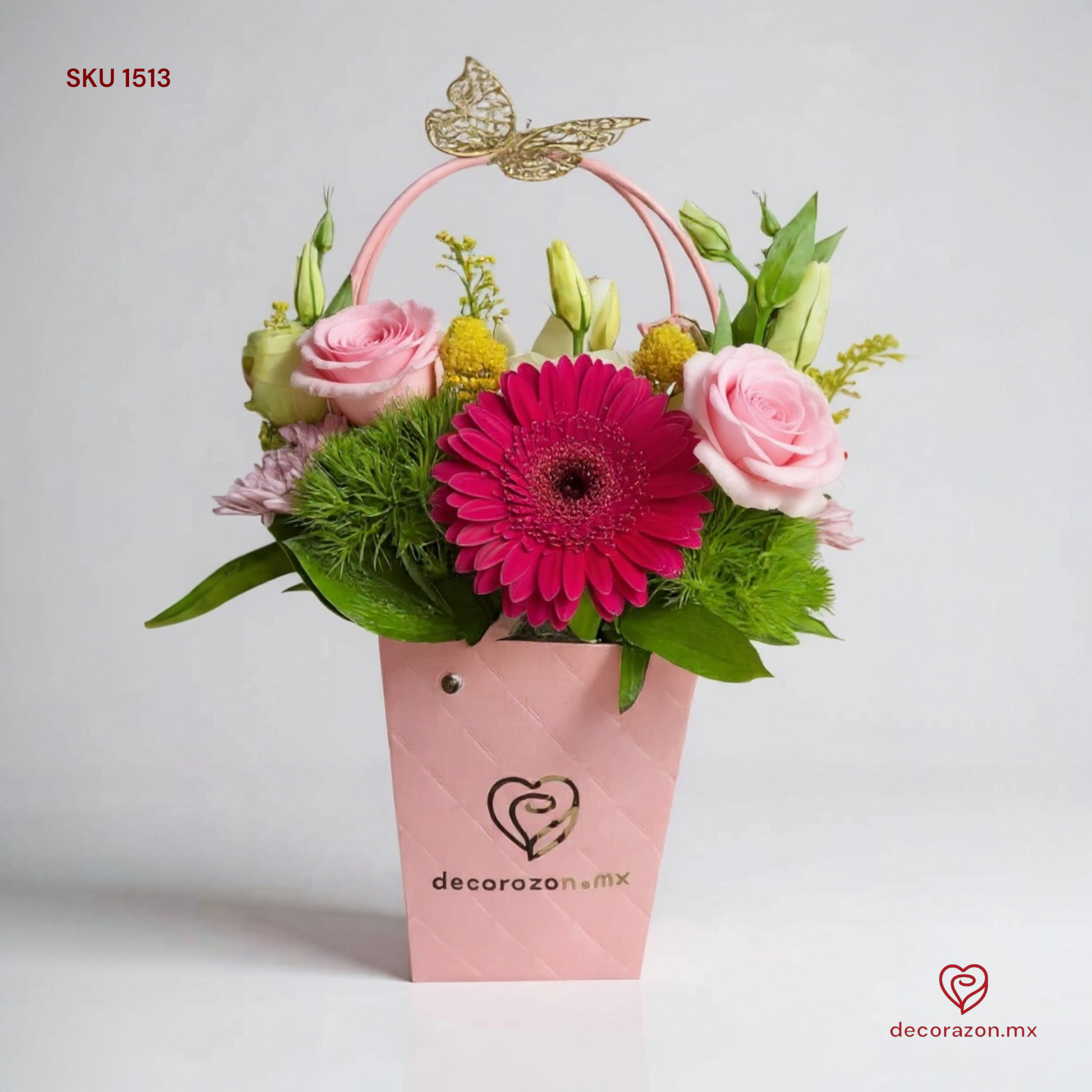 La bolsa Pía está confeccionada con flores variadas de alta calidad, cuidadosamente seleccionadas para brindar un regalo especial. Cada bolsa contiene una mezcla única de colores y texturas, perfecta para expresar amor, gratitud o amistad. Haz que alguien se sienta especial con esta hermosa bolsa de flores.