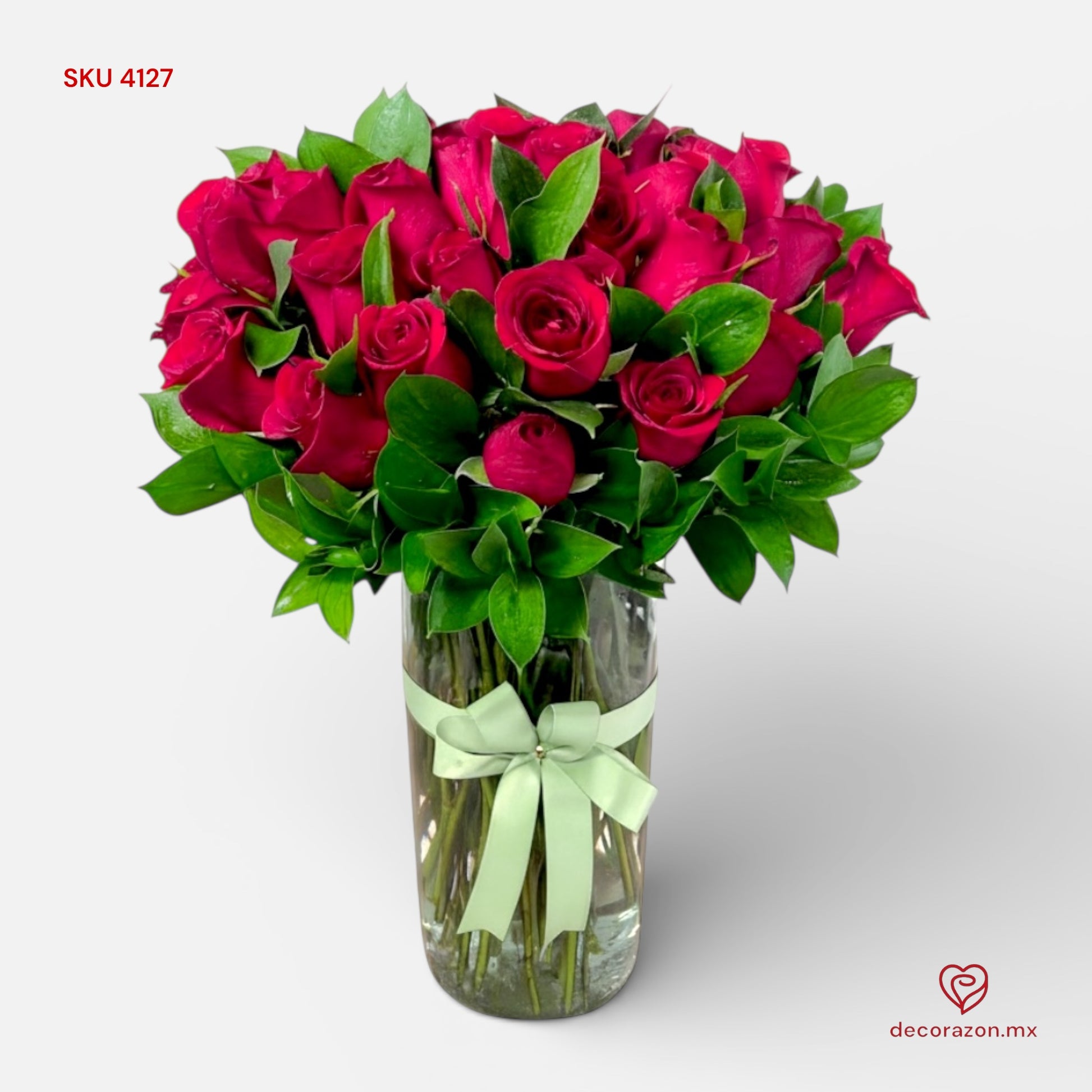 Sorprende a esa persona especial con este hermoso florero que contiene 50 rosas rojas. Perfecto para expresar amor y aprecio, estas flores frescas no solo alegrarán cualquier espacio, sino que también transmitirán un mensaje sincero. Un regalo ideal para cualquier ocasión.