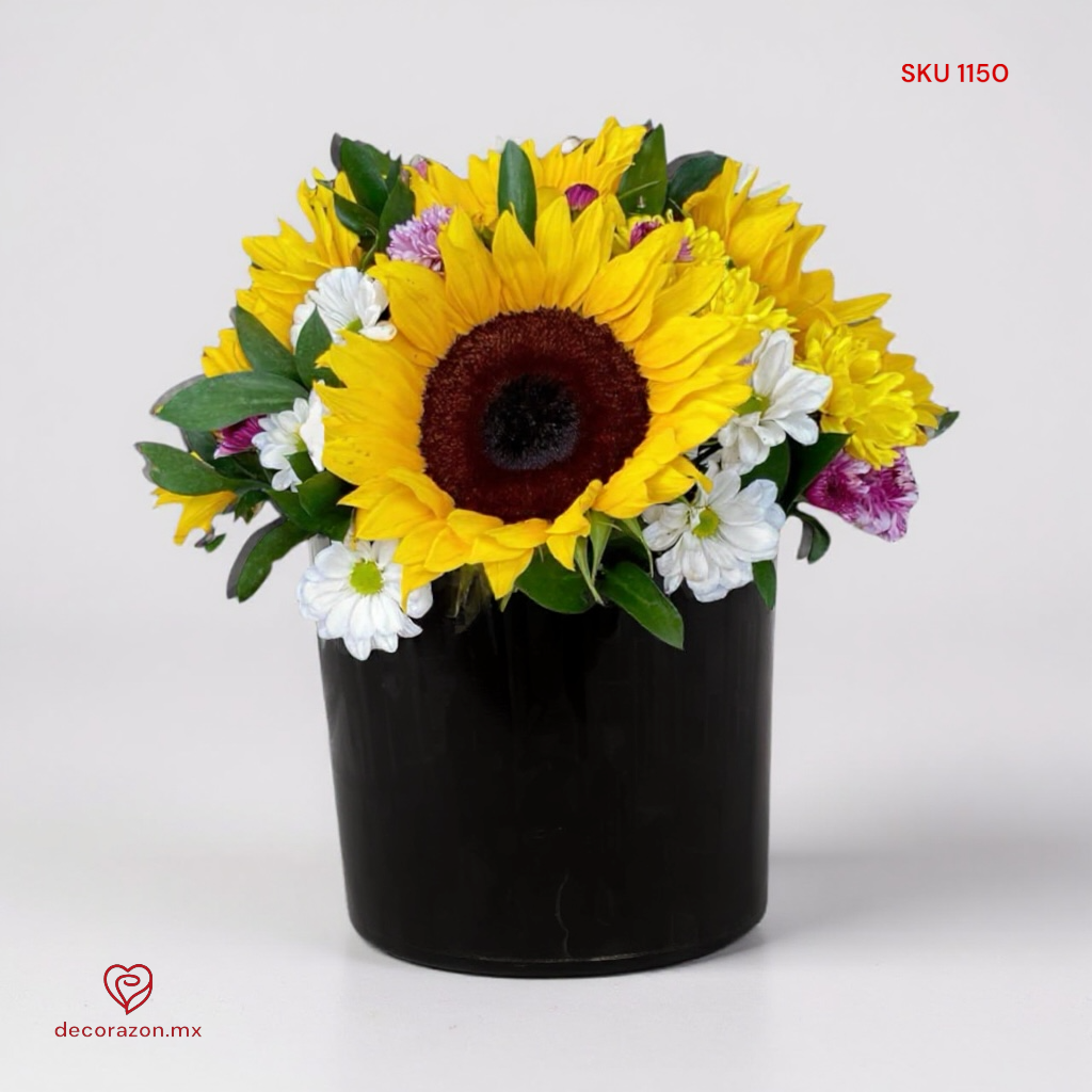 Bonita caja circular con hermosos Girasoles 🌻 una bonita manera de sorprender a esa persona especial, ideal para cumpleaños.