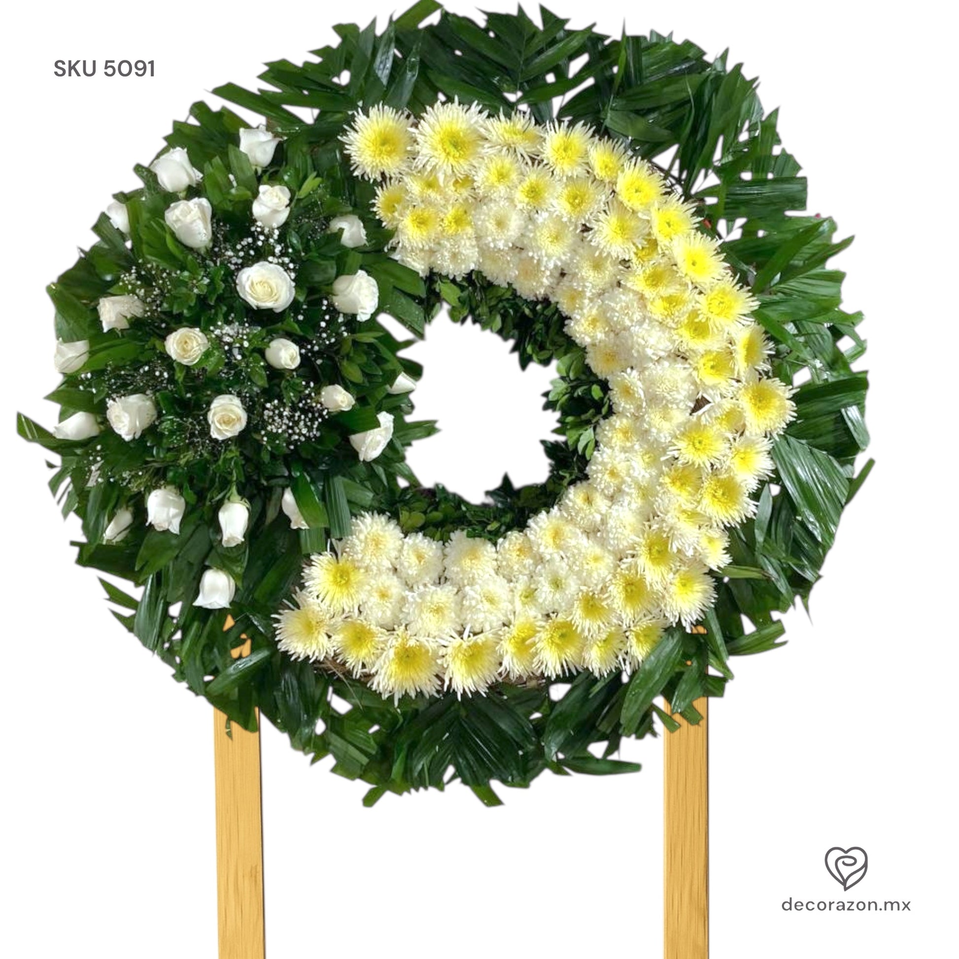 Corona de condolencia, en tonos blancos que demostrara tu afecto y apoyo a esa persona especial en estos momentos difíciles.